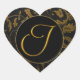 Sticker Cœur Sceau Monogram I Gold et Black Mariage damassé