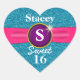 Sticker Cœur Sweet 16 Faux Ribbon Bijou Turquoise Parties scint