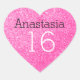 Un autocollant doux de 16 coeurs avec une parties scintillant rose vif brille arrière - plan et écriture noir et blanc. Vous pouvez le personnaliser avec votre nom et changer le numéro pour l'âge de l'anniversaire. Vous pouvez même modifier la couleur du texte et le style de police à l'aide de l'option personnaliser.