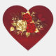 La composition de deux roses rouges artistiquement peintes et d'un rose doré, décoré d'or, feuilles de bijoux sur arrière - plan texturé.