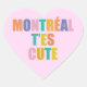 typographie moderne de la ville de montréal mignon costaud rose. Coloré autocollant de coeur tendance avec citation Montréal t'es mignon. Autocollant typographique avec couleurs. Idée cadeau pour les femmes, les filles, les ados, les amis, les étudiants de Montréalais, pour les anniversaires, mailings, emballages,