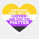 "Rappelez-vous que vous êtes aimé et que vous avez de l'importance" citation motivationnelle dans un coeur de drapeau non binaire. Pour rappeler aux gens non binaires et à vous-même que vous êtes bien plus important que vous ne le croyez, que vous êtes soignés, et que vous n'êtes pas seul. Restez forts !