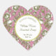 A custom heart shaped soap or recipe sticker with faux gold script and block letters on an elegant antique floral pattern of vintage etched roses in white and golds on dusty rose background, customize it to add your own logo, change fonts and more, even save your design for later.