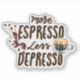 Calling all coffee lovers! If your personality doesn't fully load until you've had your first shot of caffeine, this "More Espresso Less Depresso" sticker was made for you. It’s the ultimate accessory for the true coffee lover who knows that a good brew is the secret to a better mood.