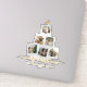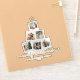 Autocollants de Noël personnalisés avec un collage photo en forme d'arbre de Noël avec 6 photos et une élégante typographie minimaliste en or.