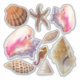 Autocollants en forme de coquillages avec des images réalistes de la vie marine. Conques roses, junonia tachetée, hippocampe, étoile de mer et autres constituent une collection intéressante de coquillages de plage à ajouter aux pages de scrapbook. Ou collez-les sur des paquets de cadeaux et de faveurs, utilisez-les comme sceaux d'enveloppe ou sur du papier d'emballage simple. Choisissez une taille.