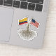 This kiss-cut vinyl sticker is designed to celebrate and honor Colombian-American dual identity and heritage. The design prominently features a combination of the national flags of Colombia (yellow, blue, and red horizontal stripes) and the United States (stars and stripes), symbolizing a deep connection to both the South American nation and the US.