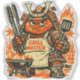 Un char tomate commandant le BBQ de la plage avec un blindage lourd et une spatule enflammée prête.