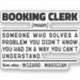 Un Commis De Réservation Drôle Dit : "Commis De Réservation Quelqu'Un Qui Résout Un Problème Que Vous Ne Saviez Pas Que Vous Aviez D'Une Manière Que Vous Ne Comprenez Pas". Prenez ce Drôle Conception de Commis de Réservation comme un cadeau amusant pour une maman, un papa ou un ami génial.