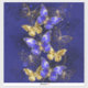 Composition des luxueux papillons saphir et bijoux en or sur arrière - plan bleu texturé.
