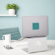Conception élégante de mandala à feuilles sarcelles sur un fond cyan foncé, créée pour une variété de produits. Parfait pour la décoration moderne, les impressions, les cadeaux, les accessoires et les objets élégants du quotidien.