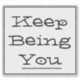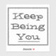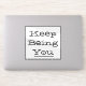 Affichez l'expression de motivation "Keep Being You" sur n'importe quelle surface plate comme les classeurs et les ordinateurs portables. Lettres noires et bordure noire sur arrière - plan blanc.