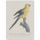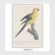 Cette image est une illustration d'histoire naturelle finement détaillée d'un jeune Ara ararauna, historiquement désigné en français sous le nom de « Guarouba dans son jeune âge ». L'œuvre d'art capture l'oiseau perché avec grâce sur une branche texturée, montrant à la fois une précision anatomique et un raffinement esthétique typiques de l'illustration scientifique ancienne.