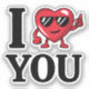 Coeur cool portant des lunettes de soleil Je t'aime autocollant. Idéal pour les fourrés de sacs cadeaux de Saint-Valentin.