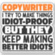 Drôle Copywriter Dit "Copywriter Je Tente De Faire Des Choses Une Preuve Idiot Mais Ils Continuent À Faire De Meilleures Idiots". Apprenez ce dessin de Copywriter amusant comme un cadeau amusant pour une maman, un papa ou un ami génial.