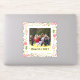 Sticker couleur corail rose et vert floral. Un joli design qui comprend une belle structure fleurie avec une photo de famille. Le cadre est fait de fleurs en corail et rose avec des feuilles verts. Votre photo est placée au centre. Vous pouvez le personnaliser et modifier le texte. Photographie © Storytree Studios, Stanford, CA