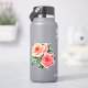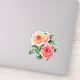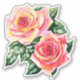 Sticker en deux roses, dans les nuances de corail profond à rose pastel pêche, avec feuilles vert jade