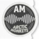 Avec le célèbre logo de la vague sonore AM des Arctic Monkeys, flanqué du texte 'AM' en haut et 'ARCTIC MONKEYS' en bas dans une police texturée blanche assortie.