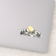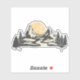 Grunge de style rétro simple illustration de coucher de soleil de montagne avec montagnes, soleil et pins décoration