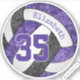 Cet autocollant de volleyball personnalisé présente l'image d'un volleyball stylisé qui a un motif kaléidoscopique floral mélangé avec ses panneaux violets et noirs - son nom numéro de maillot sont personnalisables - par katz_d_zynes