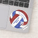 Cet autocollant de volley-ball bleu et blanc avec le nom de l'équipe et de la mascotte de l'école personnalisée présente l'image réaliste d'un volleyball qui a un motif kaléidoscopique floral mélangé avec son marron et ses panneaux bleus - son nom et son nom d'équipe sont personnalisables, tout comme son numéro de maillot - par katz_d_zynes