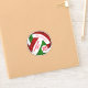 Cet autocollant couleur rouge et vert de volleyball avec le nom de l'équipe et de la mascotte de l'école présente l'image réaliste d'un volleyball qui a un motif kaléidoscopique floral mélangé avec les panneaux rouge et vert du volleyball - son nom et son nom d'équipe sont personnalisables, tout comme son numéro de maillot sur un petit volleyball blanc - par katz_d_zynes