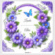 Une couronne détaillée fabriquée avec des fleurs colorées, du feuillage vert et un papillon bleu, sur un fond neutre. L'arrangement démontre une élégance et une vivacité adaptées à diverses fins décoratives.