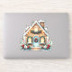This charming holiday illustration features a cozy gingerbread house adorned with twinkling string lights, lush evergreen wreaths, and festive red berries. The soft snow-topped roof and warmly glowing windows create a welcoming wintertime scene, full of nostalgic cheer. Thoughtful details like candy-like shingles, a blue front door framed with a bright red bow, and whimsical floral accents bring a storybook quality to this seasonal design. Ideal for evoking the warmth and joy of traditional Christmas décor, this piece captures the spirit of home and holiday magic. Perfect for winter displays or festive projects that celebrate classic charm. AI generated artwork.