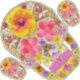 Le crâne de My Day of the Dead célèbre la vie et la mort avec un collage de mes peintures de fleurs tropicales, avec orchidées, lantana, frangipani (plumeria), hibiscus, et bien d'autres encore.