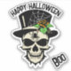 Sticker avec rose orange, crâne et araignée et texte, "Happy Halloween."