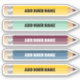 Autocollant jouant et charmant pour les enseignants et les élèves. Baguette de nom de crayon personnalisable dans différentes couleurs avec une police mignonne. C'est le cadeau parfait Retour à l'école, et vous pouvez le personnaliser avec un nom pour une touche vraiment spéciale. De plus, c'est un cadeau réfléchi pour la journée d'appréciation des enseignants. Crayon jaune, crayon d'aqua, rouille / crayon rouge, crayon bleu.