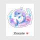 Collier autocollant avec une adorable illustration. Un dauphin bleu et violet entouré de jolis plantes sous-marins colorés.