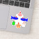 Cet autocollant impressionnant présente une collection de créatures marines portant des chapeaux de santa. Les animaux marins comprennent une paire de poissons bleus, un petit crabe rose à l'air enjoué, une étoile de mer jaune, une méduse pétillante et une jolie petite tortue verte.