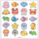 Dégustez votre petit avec ce pack de 20 autocollants de créatures colorées de dessins animés sur la mer.