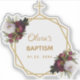 Sticker Croix dorée de baptême fille Pivoines bordeaux flo