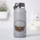 Sticker avec un Cupcake givré et garni de noix de coco déchiquetée, dans un emballage décoratif, papier peint couleur chocolat et blanc à motifs de cupcake