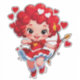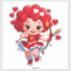 Un Cupidon de dessin animé vibrant avec des ailes, une robe rouge et un arc vole à travers un fond rouge rempli de cœurs. Parfait pour les projets de la Saint-Valentin, de romance et de thème familial.