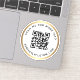 White vinyl decal with your custom QR code and two lines of custom text inside a printed golden gradient border with a (simulated in the artwork) brushed metal effect. Great for business to let their customers scan for more info, deals, online menu, to pay, etc. The Stickers are fade proof, water proof and scratch resistant.