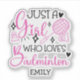 Personalize your gear with this custom name just a girl who loves badminton sticker. Featuring a cute pink girly font, hearts, and stars, this badminton racket and birdie sticker is perfect for water bottles and laptops. A unique personalized badminton gift for team players and fans. Durable vinyl makes this shuttlecock decal a court-ready favorite.