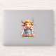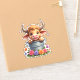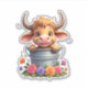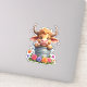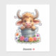 Sticker Cute Baby Highland Cow With flowers Calf Animal co