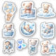 Si mignon en bleu pour un bébé garçon. Nounours et coeurs très mignons. Teddy au lit, teddy à vélo, teddy à la poussette, teddy au lit... Stickers idéal pour des projets de baby shower, des planificateurs de bébé ou pour les enfants qui attendent avec impatience un nouveau frère bébé. 10 stickers par feuille.