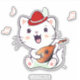 Drôle mignon chatte musicale blanche chatte avec mandoline sur arrière - plan blanc. Idéal pour les amoureux de les chats.
