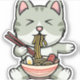Sticker Cute chat mangeant des nouilles soba dessin icône
