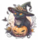 Sticker Cute Chat Noir avec sorciers Casquette Citrouille