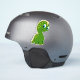 Dinosaure vert mignon avec taches vert clair et épines jaunes, yeux bleus et un sourire heureux.