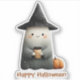 Un fantôme doux et amical dans un casquette sorcier étoilé tenant une tasse de café (ou cacao chaud) apporte une touche ludique au style Halloween. Avec l’expression "Happy Halloween", ce design est parfait pour les produits pour enfants comme les sweat - shirts à capuche, T-shirts, couvertures, tasses ou cartes de voeux. Son esthétique douce et mignonne est idéale pour les enfants qui aiment le côté ludique de la saison éffrayante, tout en gardant l'esprit festif d'Halloween en vie.