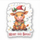Sticker Cute Highland Baby Cow Christmas Lights Merry & Br