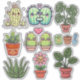 Adorable Kawaii plant stickers. This sheet includes cacti, aloe vera, monstera, houseplants and a flower in a pot.