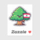 Sticker Libanais Sympa Cèdre tenant Drapeau Liban. Unique mignon et drôle autocollant d'art numérique d'arbre libanais créé exclusivement par Arabix.