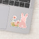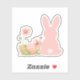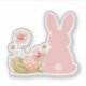 Sticker Cute Pink Easter Bunny with Spring Flowers